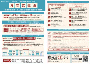 中小法人・個人事業者の方に「月次支援金」が発表されております。