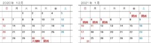 年末年始の期間について