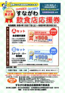 第2弾すながわ飲食店応援券の利用期間延長並びに追加販売を致します!