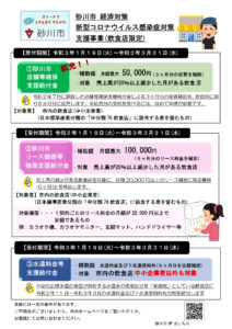 (砂川市より)新型コロナウイルス感染症対策支援事業(飲食店限定)が発表されました